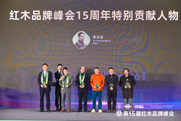 李忠信董事长(左二)荣获“红木品牌峰会15周年特别贡献人物”