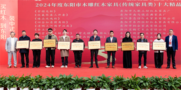 此外,李忠信红木还荣获2024年度十大精品企业称号,并十三度蝉联东阳红木行业龙头骨干企业。