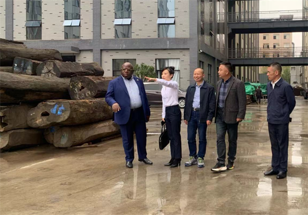塞拉利昂驻华大使(左一)参观李忠信红木工厂