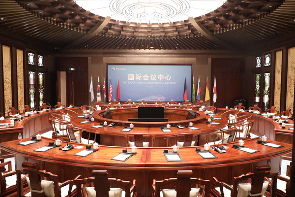 李忠信红木艺术馆(上图)和李忠信红木经典之作——国际会议中心复刻品(下图)