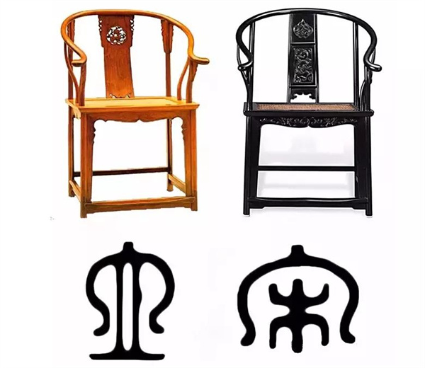 从下面的图不难看出,圈椅的椅圈同汉字中的宝盖头的篆书写法一致。