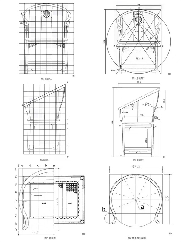 对黄花梨圈椅的设计比例进行了详细分析,运用构图分析、尺寸测量、比例计算等设计几何学原理对其形式美进行了探索。