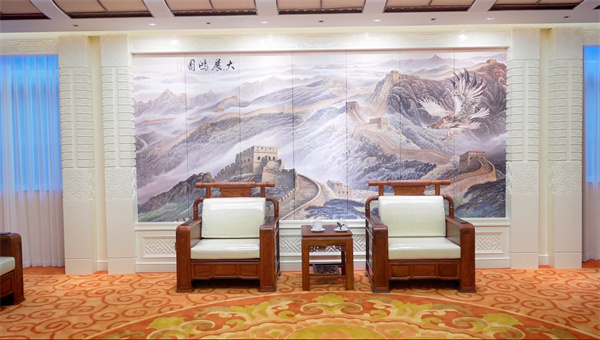 《国宾椅》登上人民大会堂,更是成为中华文化与世界文化交融的生动例证。它继承了中式家具线条流畅、结构严谨的特点,搭配寓意深远的纹饰,同时借鉴欧式宝座造型和古典铆钉嵌入工艺,中西合璧,共同勾勒出一幅和谐共生的文化画卷。