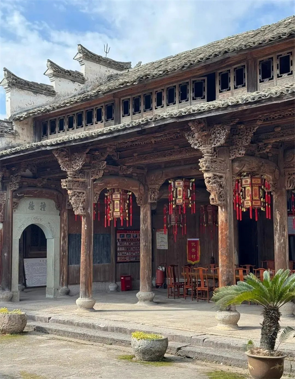 花厅为砖木结构,面积不大,粉墙飞檐近似徽派建筑,门窗与牛腿采用了透雕、深浮雕等技法,生动呈现了传统戏曲故事。