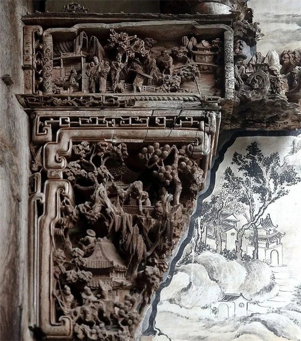 全宅装修繁复,装饰大量木雕,并融合石雕、堆塑、壁画等传统工艺,其中木雕为东阳木雕名家卢连水所作,堪称民国时期东阳木雕与建筑结合的巅峰之作。
