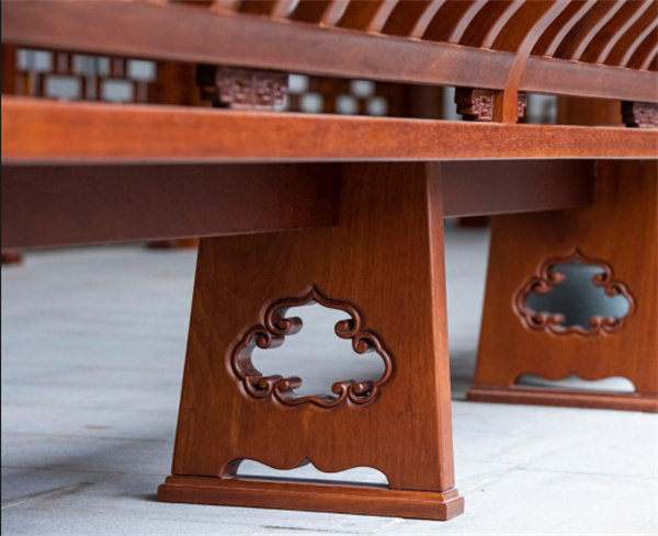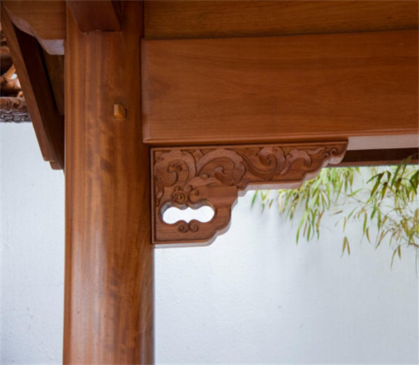 明清风格清风阁、怡心亭采用歇山顶形式的四角攒尖亭阁,青瓦盖顶,木材选用上等非洲柚木,木质坚硬,纹理美观,造型端庄典雅。
