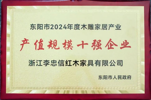 在此次意义非凡的评选中,我们凭借深厚的技术底蕴、卓越的产品品质以及强大的市场竞争力,以绝对实力脱颖而出,成功获评“产值规模十强企业”,为东阳木雕家居产业的高质量发展树立了新的典范。