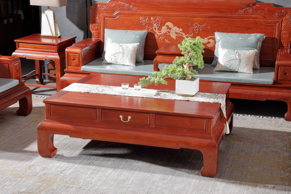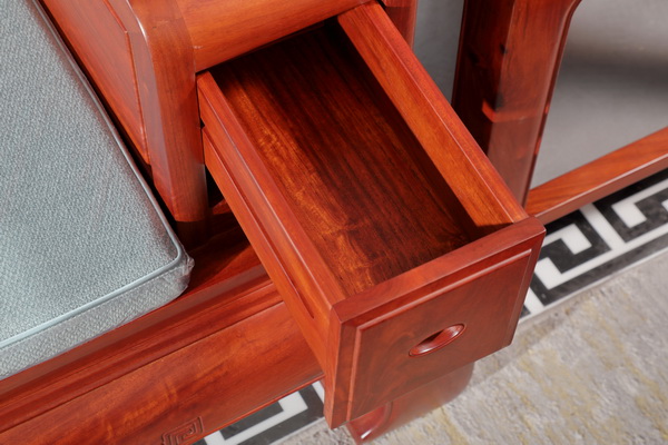 大果紫檀色彩尤为高贵典雅,愈久愈显醇厚光华。更难得的是,大果紫檀天生散发一种悠远、醇和、不疾不徐的独特香味,清幽入脾,为居室空间增添一份难以言喻的自然雅韵与人文温度。
